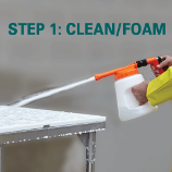 Step 1: Attach nozzle to foaming unit with quick disconnect coupler. Then spray foam on area to be cleaned. We recommend using our RoubaixTM/MC Multi-Purpose Foam Cleaner for best results.