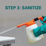 Step 3: Attach nozzle to sanitizing unit with quick disconnect coupler. Then spray sanitizing solution on the area to be sanitized. We recommend our Divosan® Spectrum Sanitizer – a concentrated neutral quaternary sanitizer – for best results.